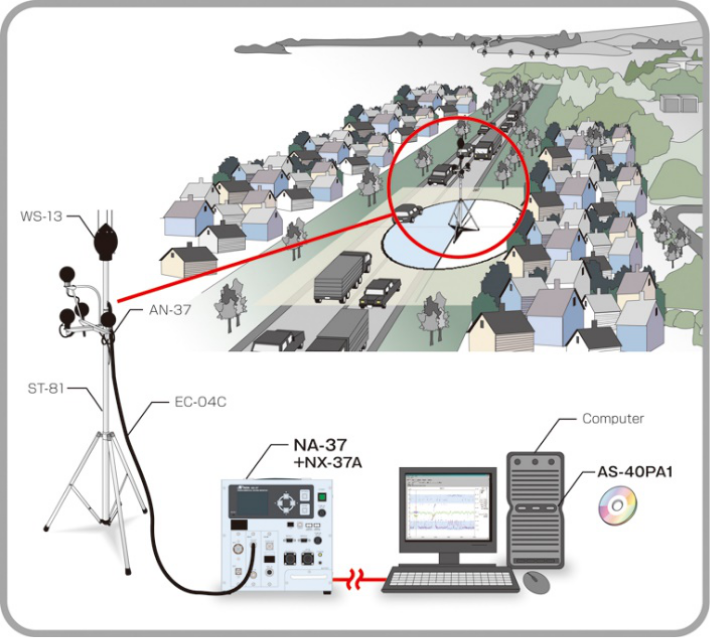 可以組合使用自動長期噪聲監(jiān)測專用設(shè)備 NA-37 和環(huán)境噪聲處理程序 NX-37A。此系統(tǒng)會每隔一定周期自動存儲必要的計(jì)算值。也可以使用每隔一定周期僅測量指定時間的間隔模式。數(shù)據(jù)可以通過 U盤或網(wǎng)線連接取得。數(shù)據(jù)處理由環(huán)境噪聲處理軟件AS-40PA1完成。此軟件可以每日、每月地將 Lden 等值輸出成報告,并能播放記錄下來的實(shí)聲以便確認(rèn)。支持多點(diǎn)監(jiān)測,可以在數(shù)個觀測點(diǎn)的數(shù)據(jù)間切換確認(rèn)。