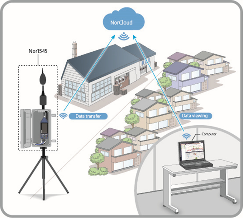 通過使用噪聲監(jiān)測終端和 NorCloud Web 門戶監(jiān)控服務,可對工廠、建筑施工及道路交通等產(chǎn)生的噪聲進行無人值守測量,滿足從短期到長期的廣泛噪聲監(jiān)測需求。噪聲監(jiān)測系統(tǒng)測量的數(shù)據(jù)存儲于云端,用戶可通過任何聯(lián)網(wǎng)終端(電腦、智能手機等)在任意地點查看。系統(tǒng)還可在噪聲超過任意設定的閾值時記錄波形,以便回放存儲在云端的實際聲音數(shù)據(jù)來確認噪聲情況。