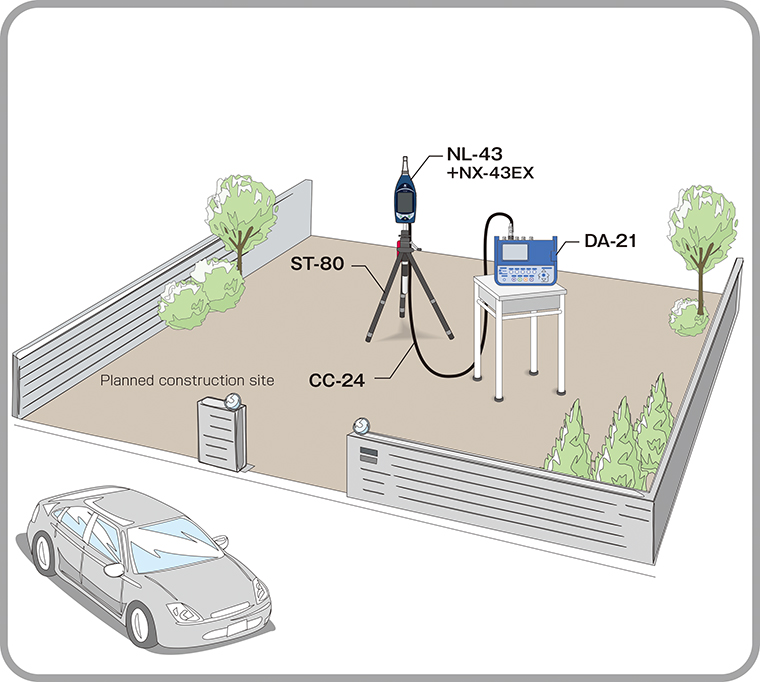 • 為了確定建筑物的外周壁的隔聲設計,在建筑物外部進行噪聲測量。對于主要在白天使用的建筑物,測量時間為8:00-18:00,而對于白天和夜晚都要使用的建筑物,測量時間為24小時。通過測量例如在隔聲設計目標的外壁表面的位置處的衡態(tài)噪聲,瞬態(tài)噪聲,間歇噪聲,沖擊噪聲等環(huán)境噪聲計算代表值。以倍頻程頻帶顯示測量值。