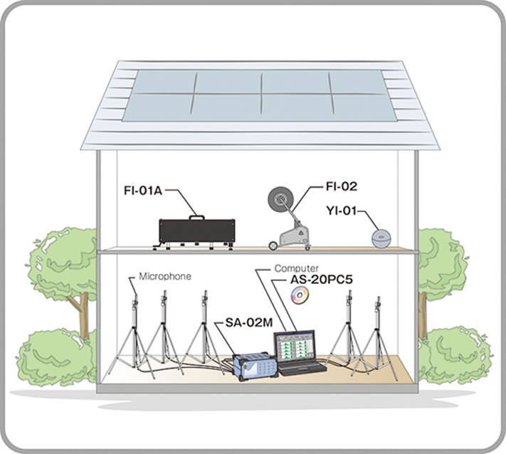 型號(hào) 產(chǎn)品名稱 備注 SA-02M 多通道分析儀 SA-02SG 信號(hào)輸出單元 EC-90系列 麥克風(fēng)延長線 麥克風(fēng) FI-01A 輕質(zhì)地板撞擊聲發(fā)生器 (敲擊器) 計(jì)算機(jī) AS-20PE5 空氣噪聲·地板撞擊聲隔聲性能測量軟件 揚(yáng)聲器用放大器 揚(yáng)聲器 -