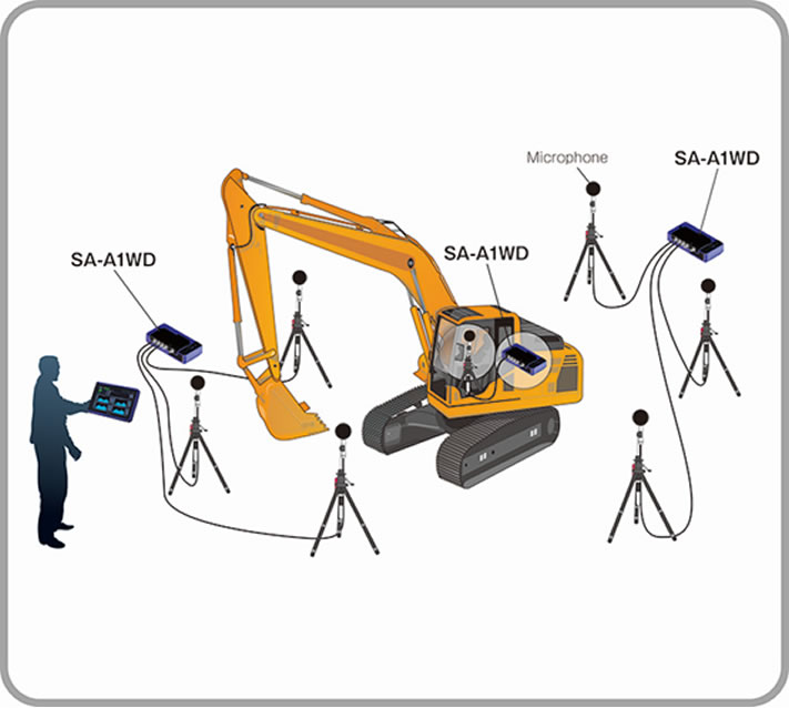 • 便攜式測量分析系統(tǒng)SA-A1結(jié)合無線發(fā)射器SA-A1WD的使用,能夠減少測量所需配備的人數(shù)。比如,建機的噪音·振動測量時,通常建機的操控人員與測量儀器的操作人員需要分別配備,而使用SA-A1的無線功能,可以讓建機的操控者來操作測量儀器。另外,由于無線長距離傳輸用的電纜,因此能夠大幅縮短鋪設(shè)電纜所花費的時間。