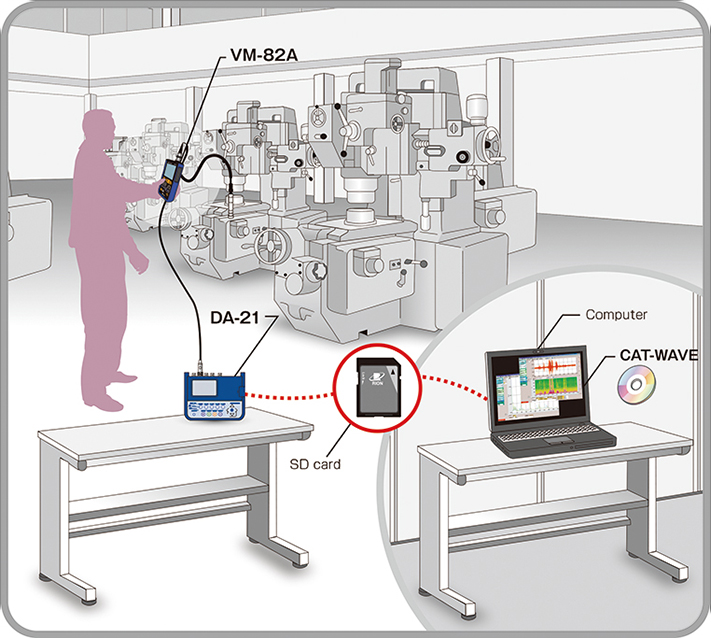 振動(dòng)分析儀VA-14可在現(xiàn)場(chǎng)進(jìn)行簡(jiǎn)單的測(cè)量和精確診斷,并記錄當(dāng)時(shí)的振動(dòng)波形。對(duì)記錄波形進(jìn)行分析可使用波形分析軟件 AS-70。