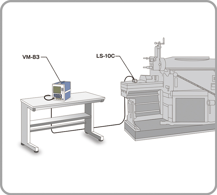 • 使用通用振動測量儀 VM-83的簡易監(jiān)測系統(tǒng)。使用VM-83的比較器輸出功能設置監(jiān)控等級。由于可以連接伺服式加速度傳感器 LS-10C,因此該系統(tǒng)對微小振動的監(jiān)測非常有效。