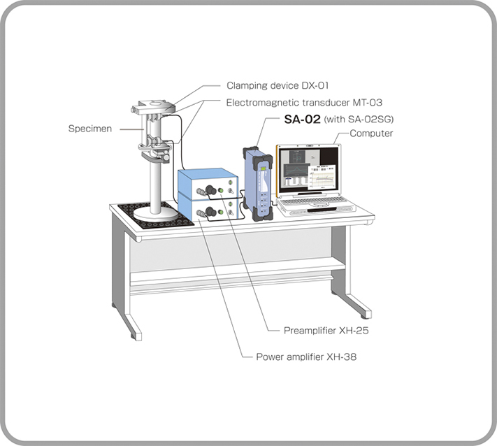 使用多通道分析儀SA-02,通過(guò)菜單簡(jiǎn)單操作以中央激勵(lì)方法測(cè)量頻率響應(yīng)。根據(jù)共振特性,通過(guò)懸臂法確定試樣的損耗系數(shù)和楊氏模量??梢允褂秒p奈奎斯特圖和頻率響應(yīng)函數(shù)二重監(jiān)視功能驗(yàn)證測(cè)量結(jié)果。此外,恒溫槽的自動(dòng)控制能夠?qū)崿F(xiàn)各溫度下試樣的自動(dòng)測(cè)量。