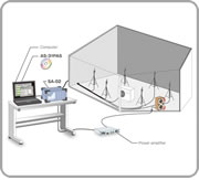 本系統(tǒng)為使用SA-02和專用軟件通過半混響室法或混響室法測量聲功率級的系統(tǒng)。即使對于產(chǎn)生相同能量噪聲的機器、電器和辦公設(shè)備,環(huán)境噪聲水平也可能因各種條件而異。為了預(yù)測安裝或拆卸設(shè)備時的噪聲,以及作為噪聲源的設(shè)備的獨立評估,有必要測量聲功率,即每小時產(chǎn)生的聲能。測量系統(tǒng)由麥克風(fēng)、前置放大器、多通道分析處理器SA-02系列和聲功率級測量軟件等組成,通過半混響室法或混響室法測量聲源的聲功率。